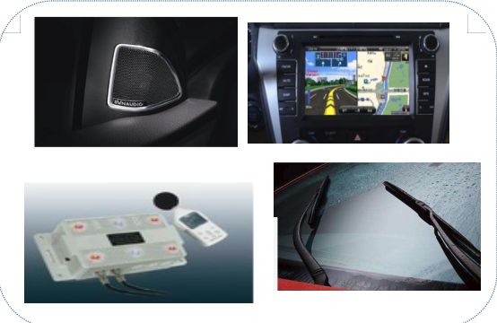 車載電視/音響,DVD/GPS,防盜器,雨刮,機動車電喇叭,洗滌器,轉(zhuǎn)向柱上組合開關(guān),翹板開關(guān),保險絲、各類電機、點火線圈,繼電器、車載充電器、車車載按摩/加熱坐墊、車載風(fēng)扇、車載空調(diào)、車載電水壺、車載冰箱、車載咖啡壺、車載電動千斤頂、車載吸塵器、車載電動工具、信號閃光器、玻璃升 降器……