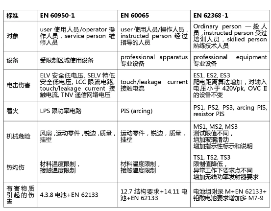 EN 62368標準與EN 60950和EN 60065標準有什么不同?