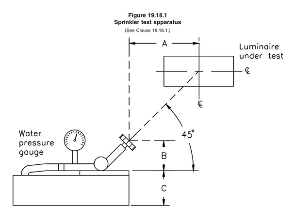 3、如果燈具安裝高度低于1.2m,需要做Sprinkler test和Rain test.(移動式燈具做Wet localtion,就需要做Sprinkler test和Rain test)