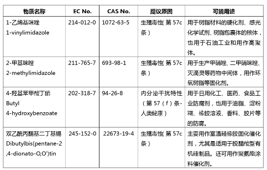 2020年6月16日,歐盟化學(xué)品管理局(ECHA)將新一批共4項(xiàng)物質(zhì)加入SVHC候選清單。由于成員國(guó)委員會(huì)沒有一致支持法國(guó)關(guān)于將間苯二酚(EC 203-585-2; CAS 108-46-3)確定為SVHC的提議,所以間苯二酚暫未被列入SVHC中,但后續(xù)歐盟委員會(huì)仍會(huì)就此物質(zhì)展開進(jìn)一步的確認(rèn),從而做出最終決定。至此SVHC已增加至209項(xiàng)物質(zhì)。新增4項(xiàng)SVHC候選物質(zhì)信息如下表: