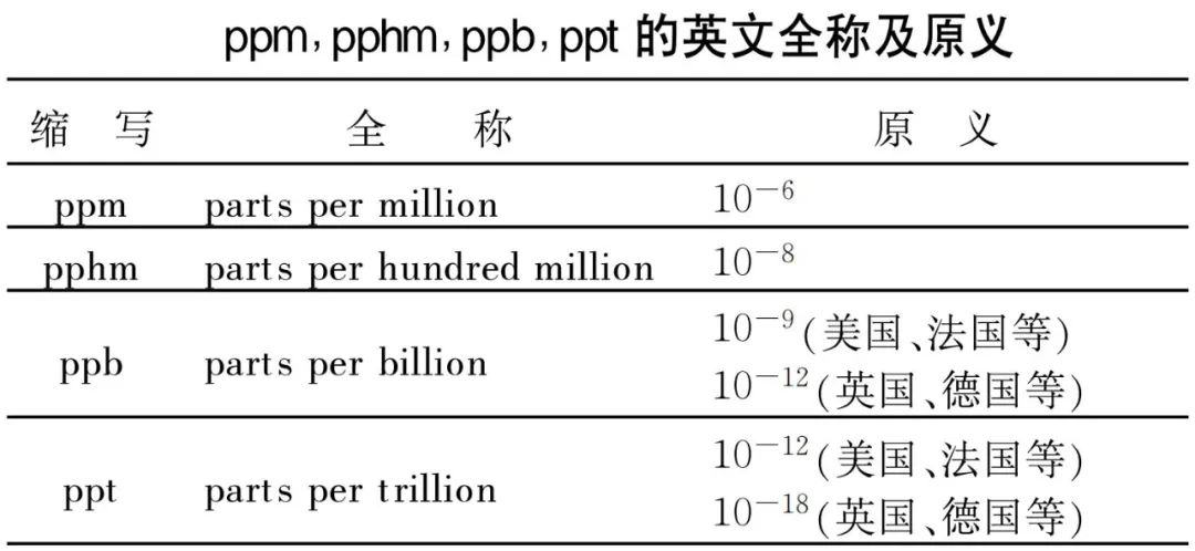 在土壤、動植物、固體廢棄物中ppm、ppb、ppt與質量含量的換算關系為
