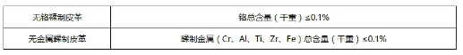 在鞣制過程中考慮到ISO 15115(2019)對“無鉻鞣制皮革”和/或“無金屬鞣制皮革”的定義,并分別滿足ISO 15115(2019)第3.20和3.57條的要求。
