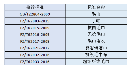 首先,應先了解毛巾類產品的執行標準有哪些,如下表: