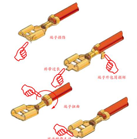 壓接連接借助于有效的圖紙要求執行。組件特殊的壓接尺寸(壓接高度和寬度等)根據不同的端子生產廠家及組件圖紙中規定。預給定的壓接尺寸精確。匹配加工的導線橫截面和端子件應使用匹配的壓接設備加工。?